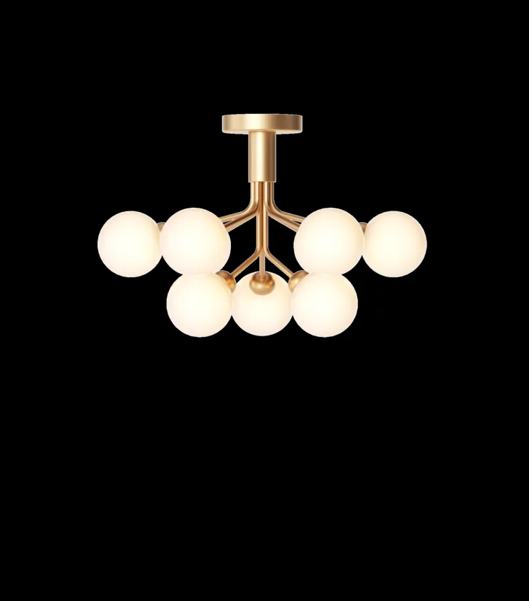 Apiales 9 loftlampe monteres direkte i loftet og har en lav højde på 40 cm. Det giver lampen en stor anvendelighed – og gør det nu muligt at have en loftlampe/, hvor der er lavt til loftet eller i gennemgangsrum.