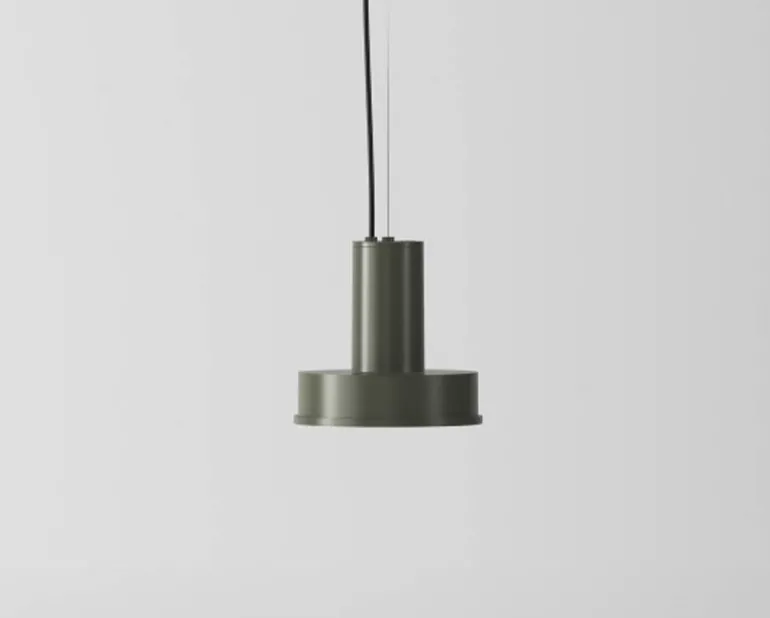 En mindre udgave af Arne Domus pendlen. Designet i mat aliminium og findes i 4 forskellige farver; Hvid, aluminium grå, mørkegrøn og sennep.