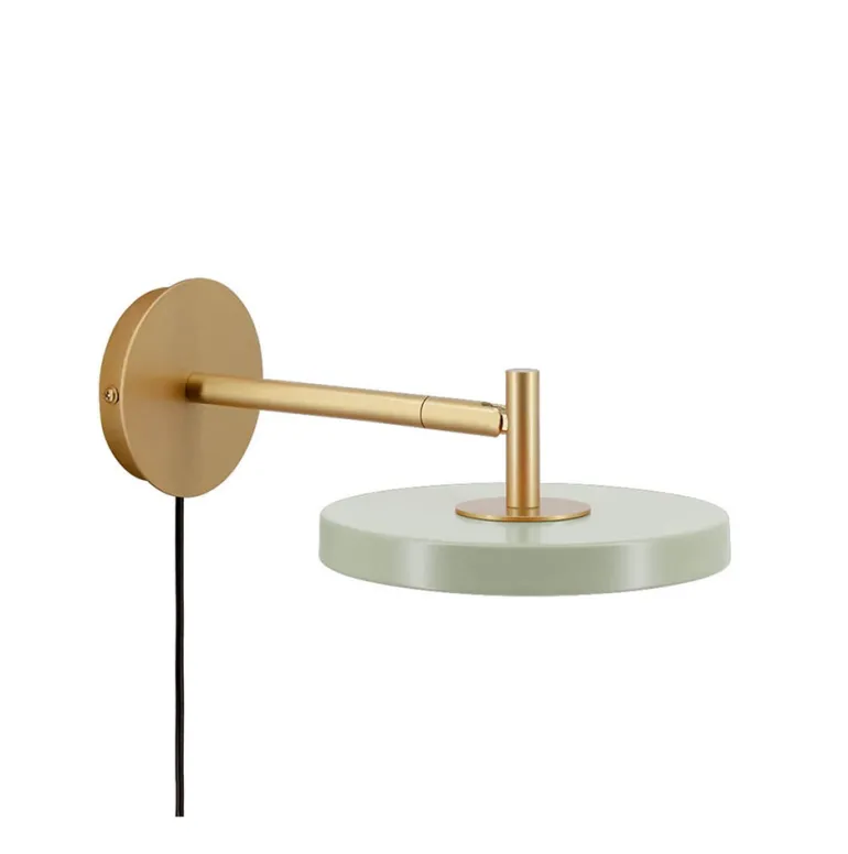 Den korte væglampe i olivengrøn har et minimalistisk design med et tidløst udtryk. Lampen har en integreret LED-lyskilde med et behageligt lys, der kan dæmpes via en diskret knap på undersiden af skærmen.