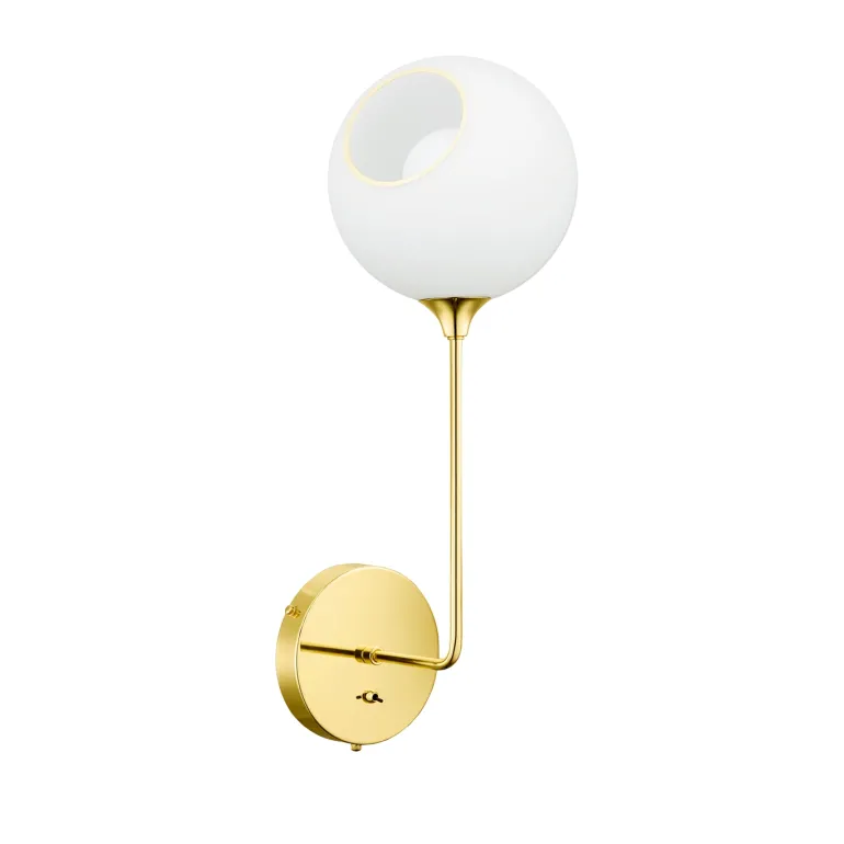 Materialet er mundblæst opal glas med guld kant og guld arm.