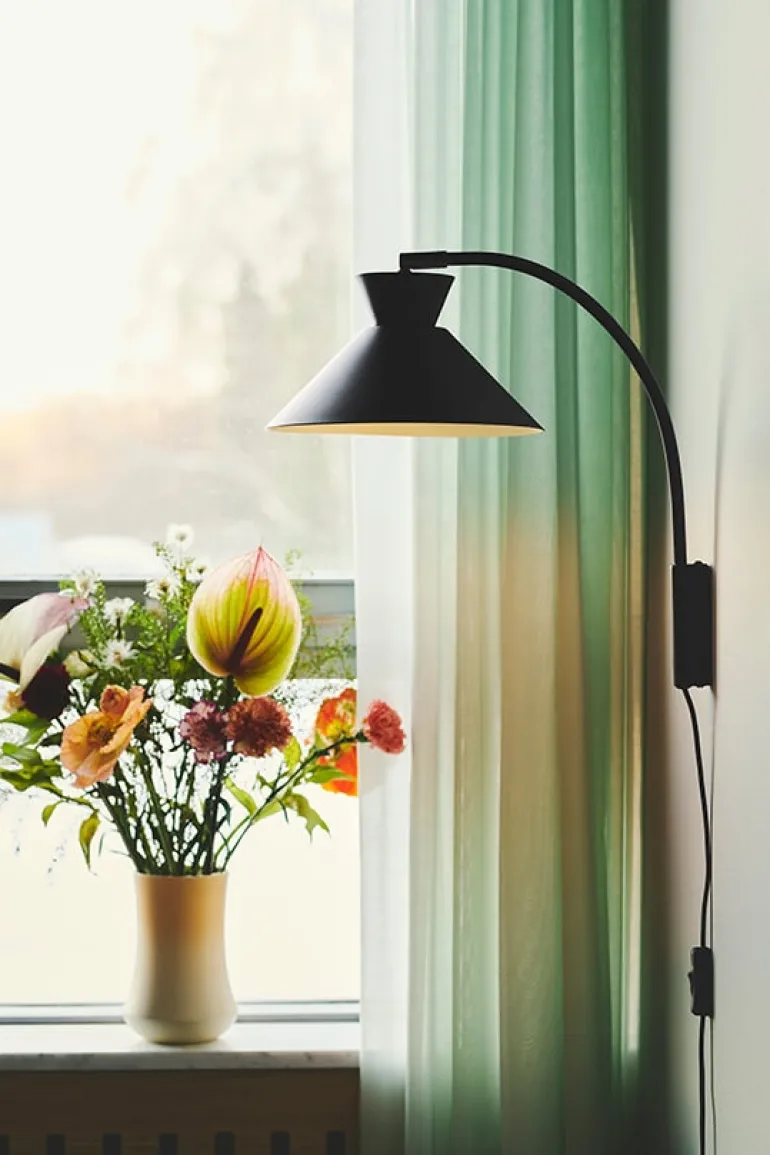 Den smukke Dial findes i grå, sort og hvid. Væglampen har et enkelt nordisk design med rene linjer.