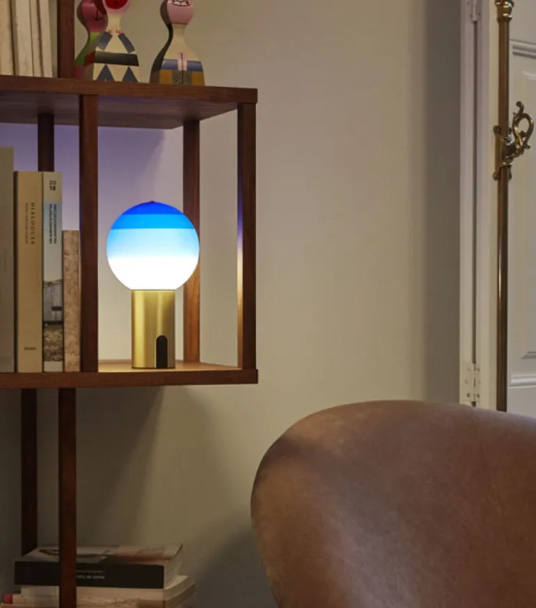 Basen på Dipping Light er i børstet messing, hvilket er med til at gøre Dipping Light Batteri Bordlampen meget elegant.
