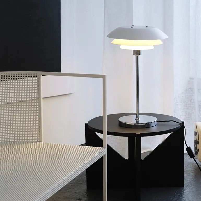 DL31 n er en klassiker fra . Bordlampen har et fantastisk udtryk med de unikke 3-lags skærme, der får lyset til at vende nedad på en afdæmpet og smuk måde.
