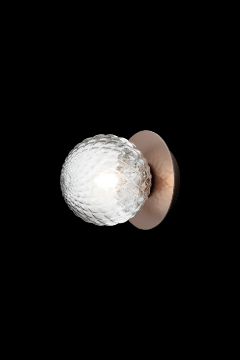 Liila 1 Small består af en fin metalplade, som giver flot modspil til det strukturerede, mundblæste glas – og giver lampen et elegant udtryk. Lampen kan både installeres direkte i et lampeudtag eller med Nuura kabelkit til stikkontakt.