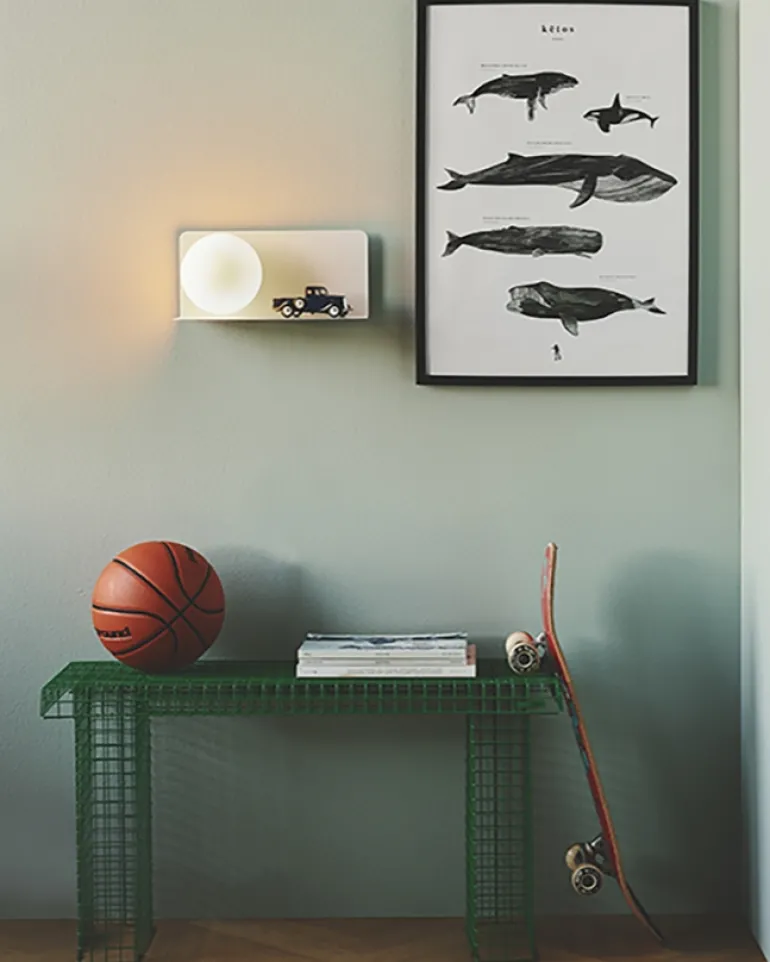 Placer lampen i soveværelset eller entréen for at opbevare vigtige ting såsom din telefon, en bog eller dine nøgler. Den kunne også være perfekt at placere på børneværelset, hvor den giver et afdæmpet lys og giver muligheden for at stille legetøj på hylden samtidig.