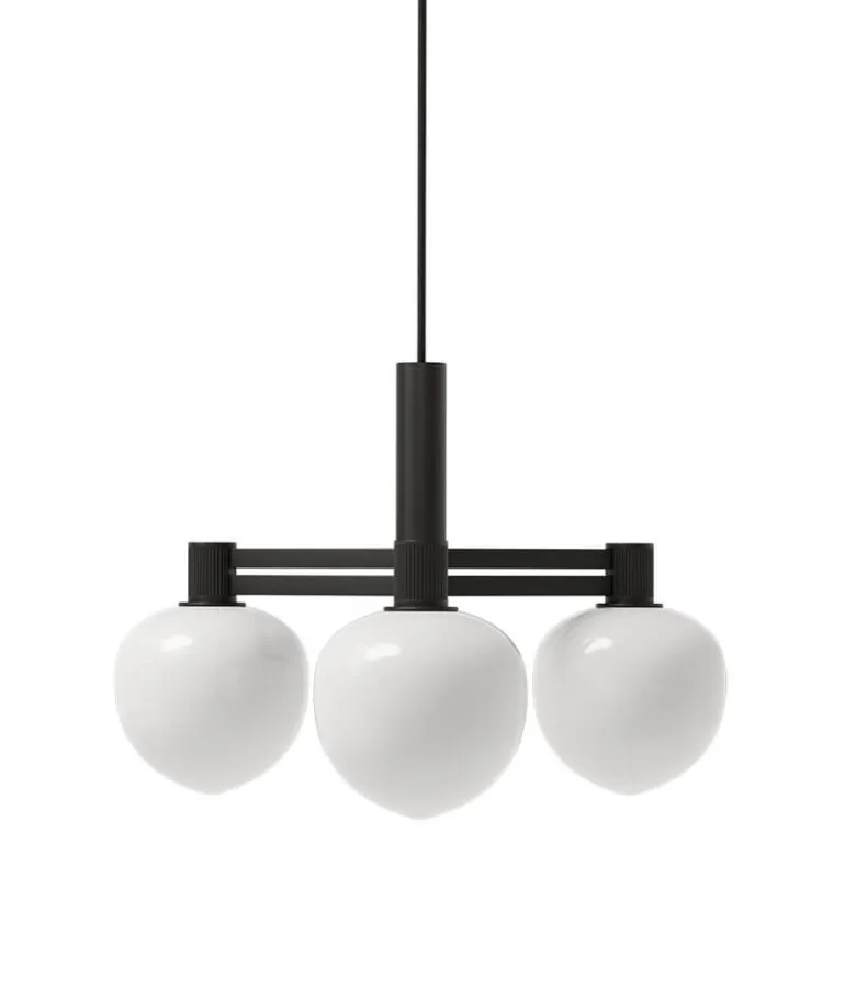 n består af et 3-lags opalt glas, der flot kombineres med sorte detaljer. Det tykke opale glas afskærmer lyskilden, så det fremstår blændfrit og ensartet i rummet. Lysekronen ville være perfekt over køkken- eller sofabordet.