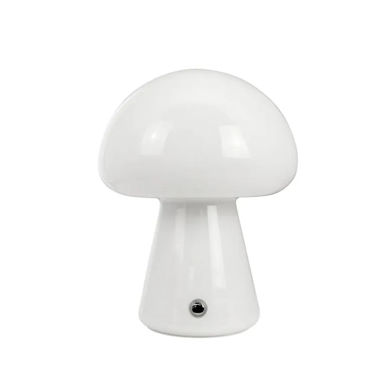 Den genopladelige Morkel Mushroom med elegant design i glas er den perfekte tilføjelse til indretningen. Lampen er dæmpbar i tre trin på 100%, 50%, 20% via en touch-funktion og kan med sit trådløse design nemt flyttes rundt i hjemmet. kan også benyttes udendørs som hyggelig eller altanen, men skal tages ind efter brug, da den ikke tåler fugt. Opladningen af den sker ved at placere den på den medfølgende base.