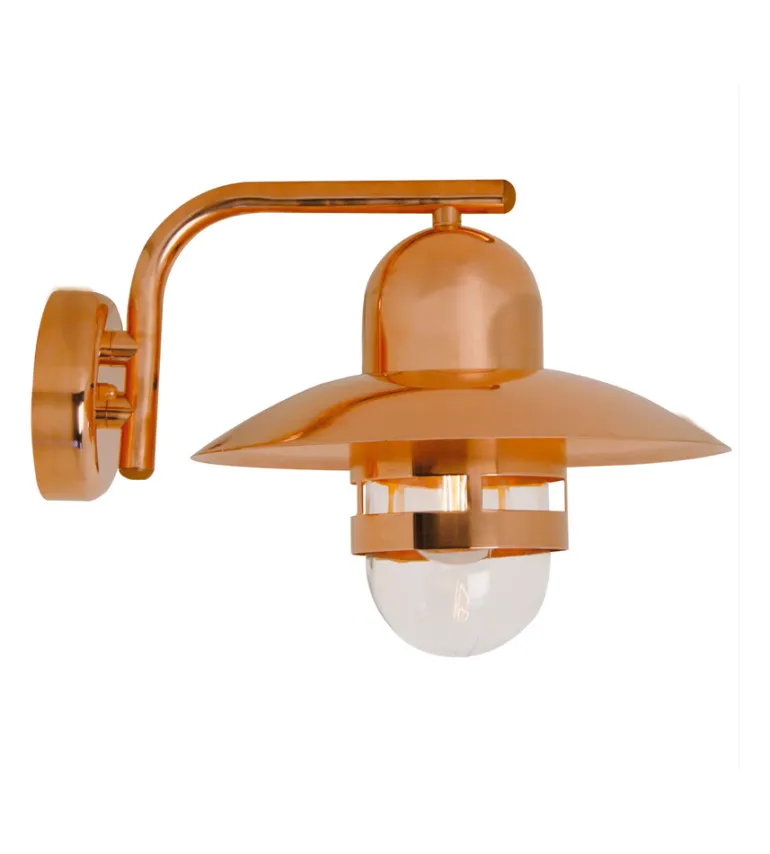 Nibe udendørs væglampe i smukt kobber bliver en flot dekoration til dit uderum med de bløde former og klare staldglas. Væglampen er lavet af materialer, der er specielt egnet til at klare dårligt vejr, og der tilbydes 15 års garanti, hvis der skulle komme uønsket korrosion i løbet af tiden. Venø er en del af ‘designed for Seaside’ – sortimentet, der er egnet til at modstå de hårdeste kystnære vejrforhold