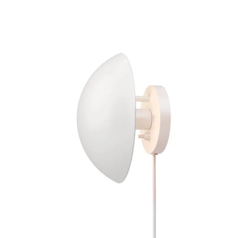 Hat væglampen giver et indirekte lys, som ikke blænder. Indersiden af skærmen er rosafarvet, og derfor giver lampen en varm tone i rummet.