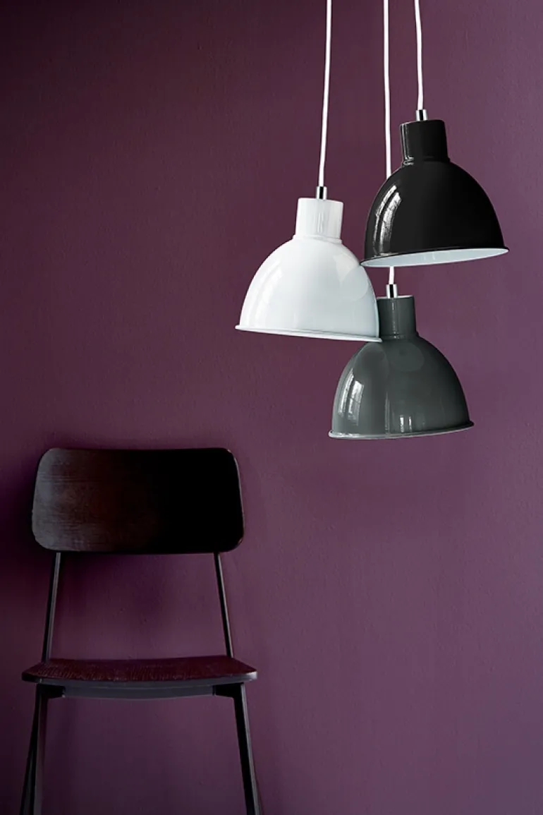 Pop findes i flere farver og som væglampe. Pendlen har et enkelt design og vil passe godt over et spisebord. Lampen kan dæmpes, hvis der vælges en dæmpbar pære til.