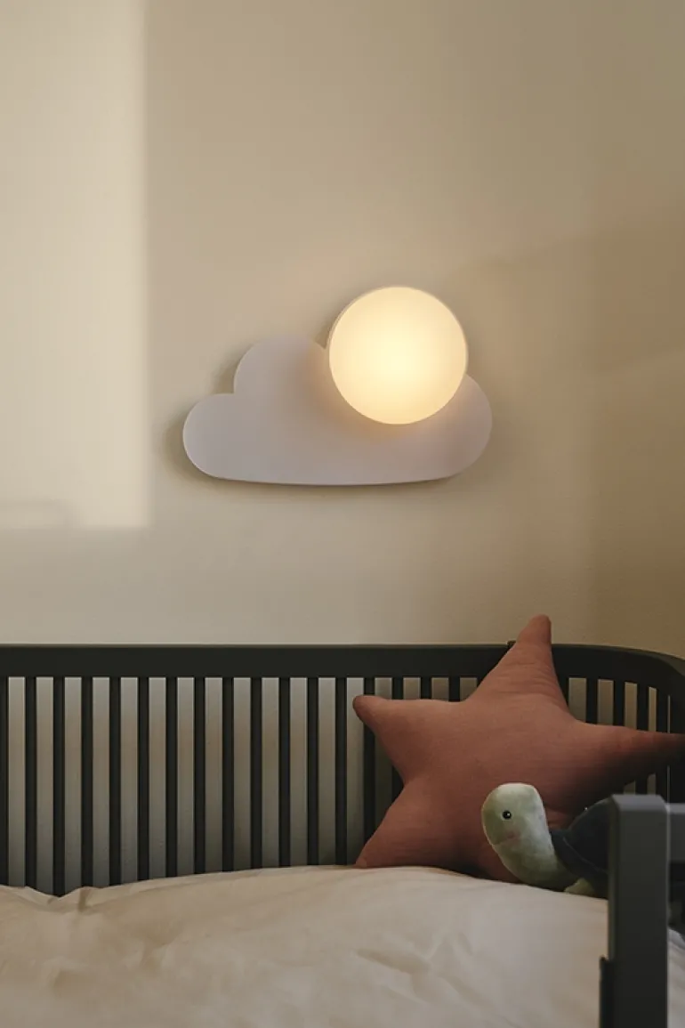 Skyku Cloud er den perfekte , der sikrer et trygt og sjovt miljø. Glaskupplen inde i skyen fremstår afdæmpet og diffust i rummet, når lampen er tændt. Den er derfor perfekt at have tændt inden barnet skal sove for at sikre en tryg og rolig nattesøvn.