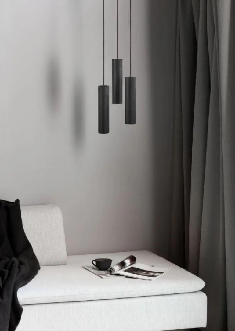 Tilo findes også som enkelt pendel i flere forskellige finish og som 5 pendler i sort samlet på en skinne.