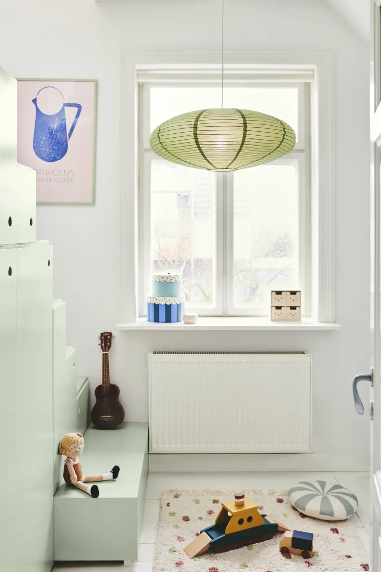 Villo pendlen har en skærm lavet af rispapir, hvilket giver et blødt og diffust lys.