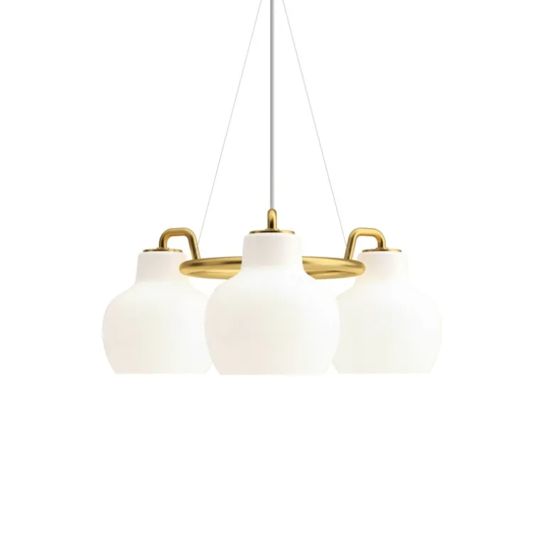 VL Ringkrone afgiver et behageligt og varmt lys, der vil passe ind i enhver indretning. Skærmene er af mundblæst opal trelagsglas med ophæng og baldakin i ubehandlet poleret messing, som kommer til at patinere. Pendlerne findes med en, tre, fem eller syv skærme.