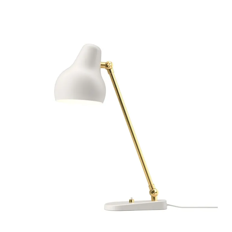 VL38 bordlampen har et utrolig funktionelt design, hvor skærmen kan justeres efter behov. Armaturet udsender et direkte og retningsbestemt lys, og grundet den hvidlakerede inderside af skærmen har lampen et meget behageligt lys.