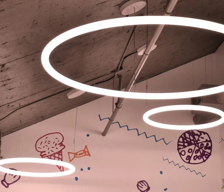 De smukke lysende cirkler kan kombineres med flere sammen – også på tværs af størrelser.