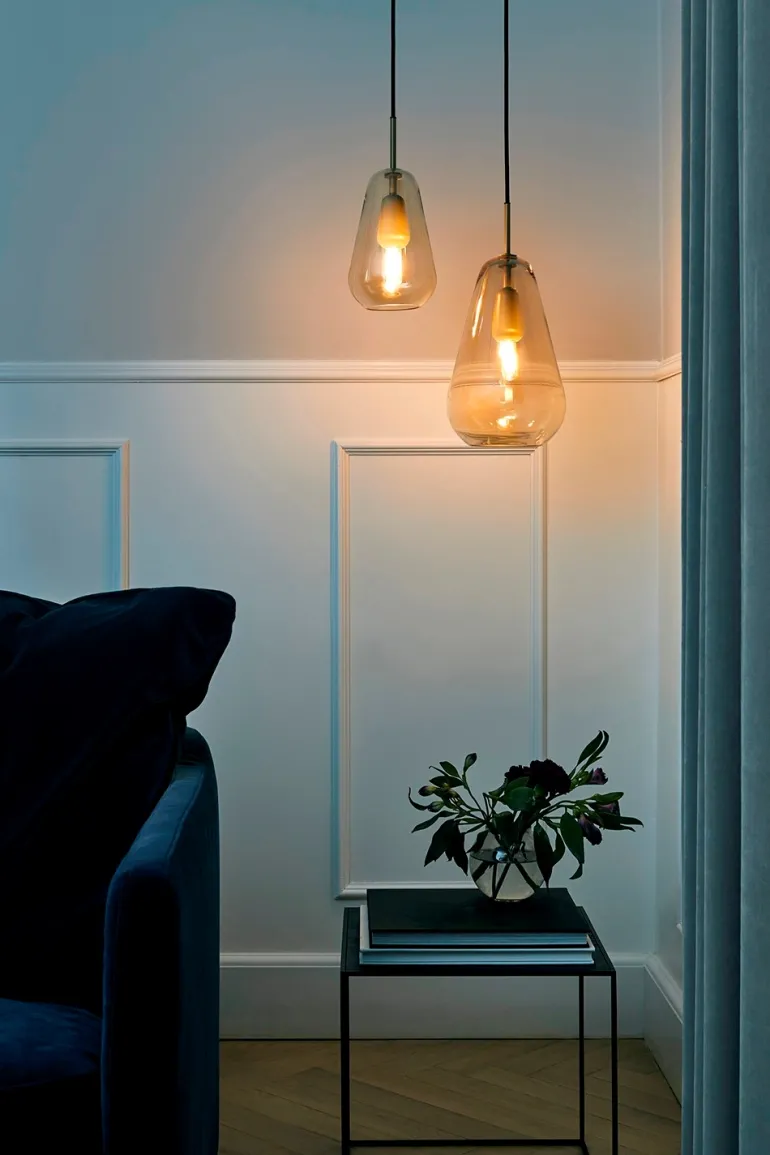 Anoli-lampeserien er i høj håndværksmæssig kvalitet og lavet i de bedste materialer. Anoli er enkel i sit formsprog og består af fine mundblæste dråbeformede glaspendler.