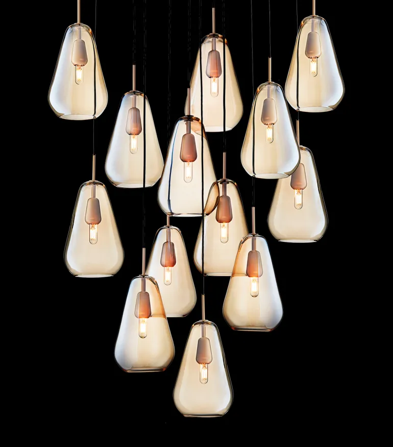 Anoli-lampeserien er i høj håndværksmæssig kvalitet og lavet i de bedste materialer. Anoli er enkel i sit formsprog og består af fine mundblæste dråbeformede glaspendler.