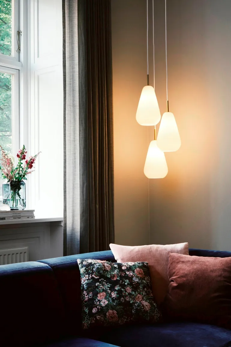 De elegante Anoli-pendler i er i blankt opal mundblæst glas og giver associationer til et fredfyldt sneklædt vinterlandskab. Det snehvide glas fremhæver pendlens enkle linjer samt fremhæver den enkle dråbeform, der fordeler det bløde og jævne lys på fineste vis.