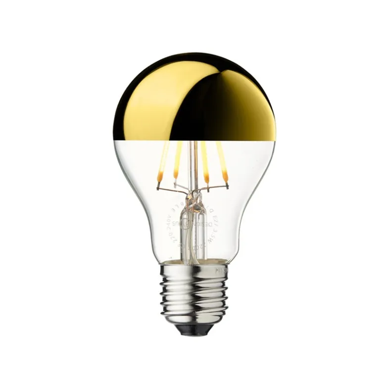 Topforspejlet guldfarvet LED-pære Ø60 med E27 sokkel fra Design By Us.