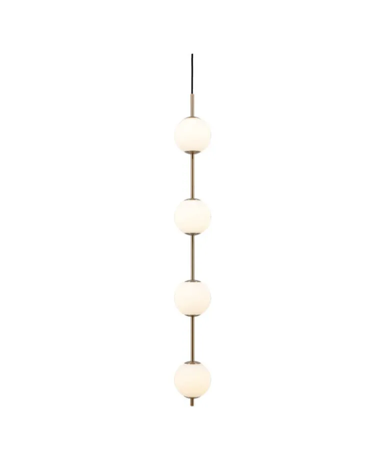 Den elegante Audrey 4 består af fire mundblæste kugleskærme i opalglas med messingdetaljer og spreder et blødt og behageligt lys. leder tankerne hen på en række lysende perler og vil være en sofistikeret tilføjelse til enhver indretning. Den kan hænge alene eller flere sammen i en klynge. Benyt eksempelvis Audrey som , eller indbydende .
