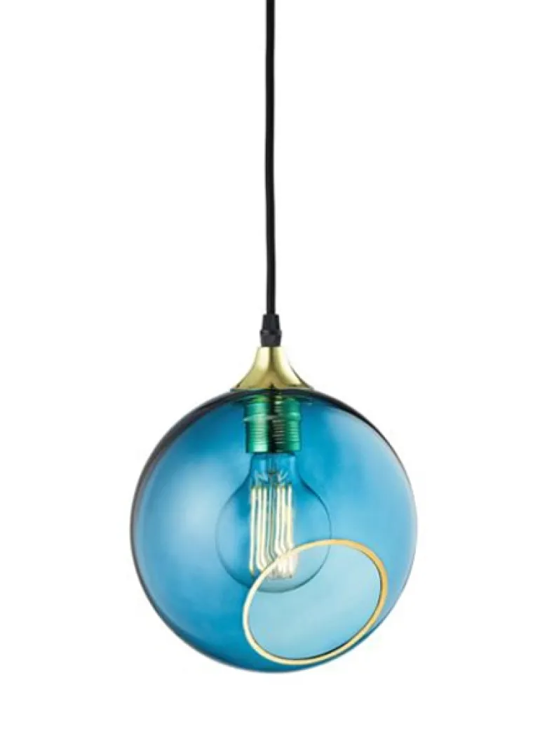 Materialet er mundblæst og håndmalet glas med sort stofledning.