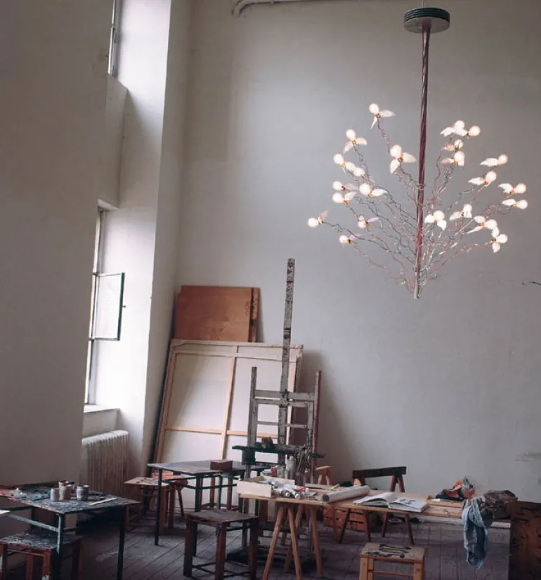 Lysekronen Birds Birds Birds fra Ingo Maurer, inviterer brugeren med ind som meddesigner.