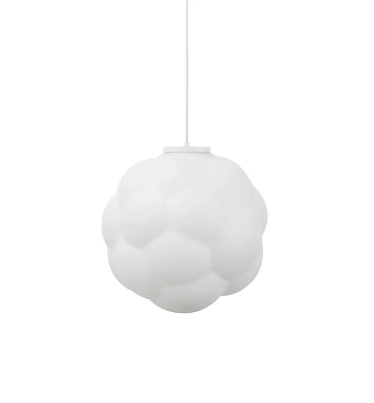 Bubba er en unik belysningskollektion, der henter inspiration fra sammensætningen af svævende sæbebobler. Sæbeboblernes forskellige størrelser tilføjer en unik og visuel dimension til ethvert rum. Bubba er en alsidig lampe, som egner sig mange steder i indretningen. Den består af sandblæst opalglas, der sikrer behageligt og jævnt lys samt en hyggelig glød.
