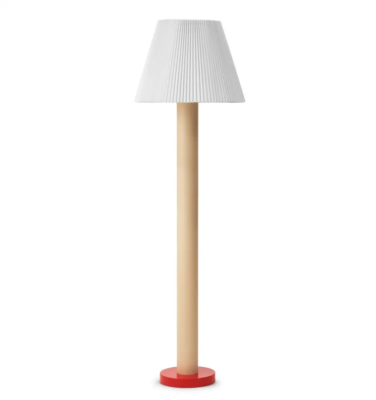Cellu gulvlampen har en klassisk foldet lampeskærm og fremstår med et moderne udtryk. Skærmen er i PVC og hviler på en pulverlakeret aluminiums fod og pulverlakeret stål base.