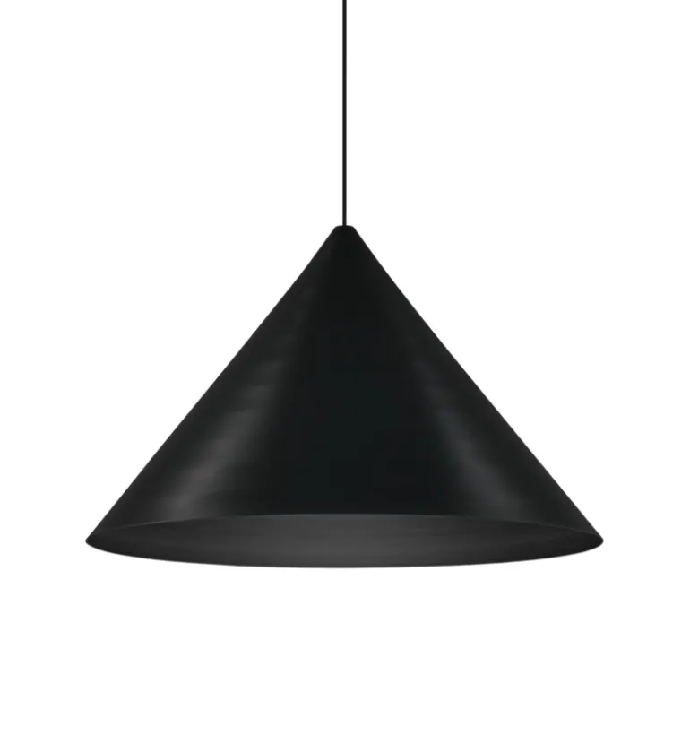 Enkel og moderne, kegleformet pendel fra Wever & Ducré fremstillet i aluminium med en overflade i mat sort med sort justerbar ledning (maksimal længde: 4000 mm).