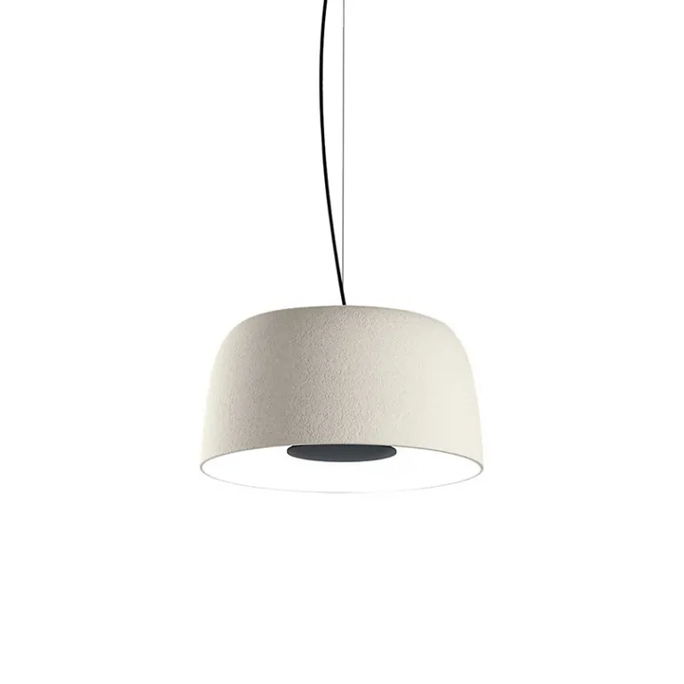 Ydersiden af lampen har en overflade, der forestiller, at den er lavet af sten, og derfor giver en effekt af tung vægt. Det konstraserer i forhold til lampens inderside, der har en glat, hvid overflade, der reflekterer lyset ud i rummet på smukkeste vis.