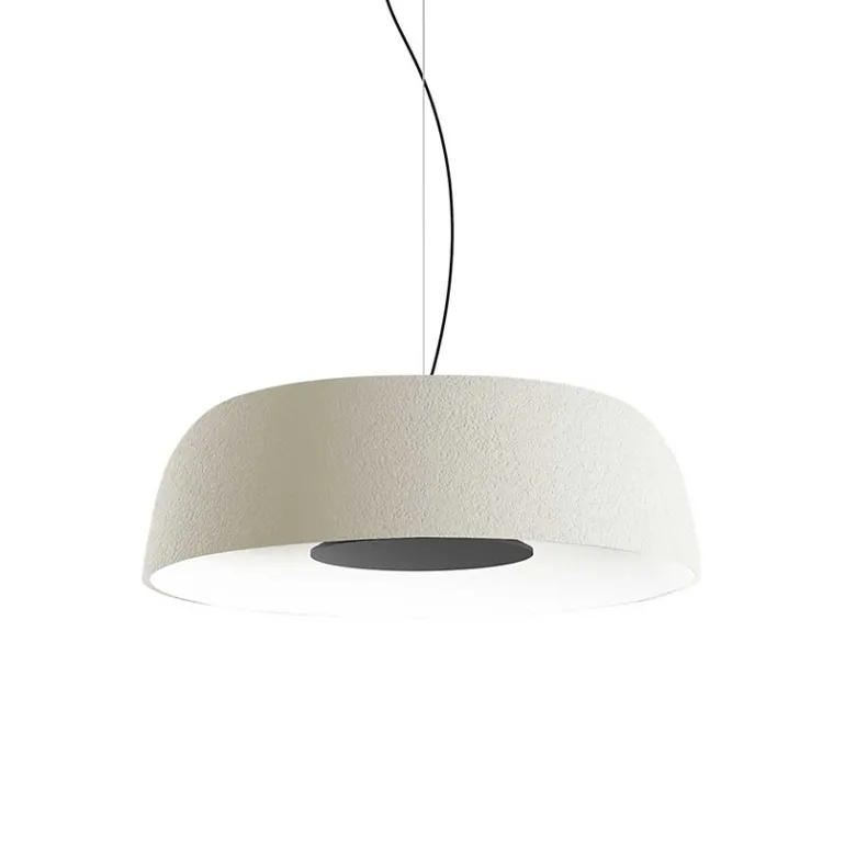Ydersiden af lampen har en overflade, der forestiller, at den er lavet af sten, og derfor giver en effekt af tung vægt. Det konstraserer i forhold til lampens inderside, der har en glat, hvid overflade, der reflekterer lyset ud i rummet på smukkeste vis.