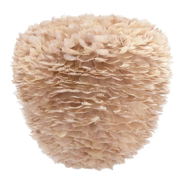 Evia medium er en med form som en bikube og er fremstillet af naturlige gåsefjer. Skærmen har et elegant udtryk, der leder tankerne hen på luftige skyer på himlen og vil med med sine bløde fjer være et raffineret element i ethvert rum. Benyt eksempelvis skærmen som , i entréen eller som en smuk eller alene eller flere sammen i stuen.