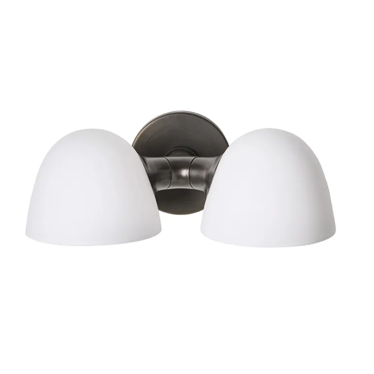 Fuse Double har et klassisk design skabt i holdbare materialer som trelags opalglas, alabast og bruneret messing. De to medfølgende og udskiftelige lyskilde er placeret bag gennemskinnelige låg af alabast, der sammen med skærmene i trelags opalglas sikrer en blød og blændfri belysning.