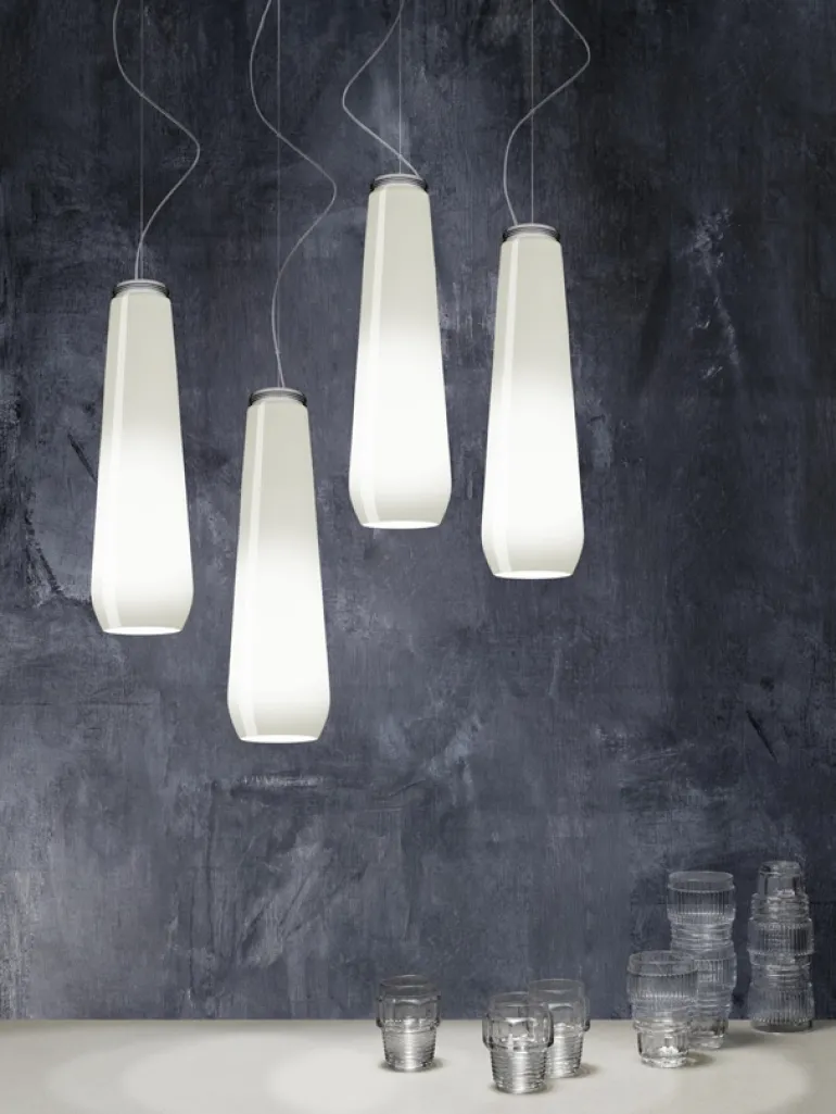 Glass Drop pendlen er fremstillet af blæst glas og forestiller glassets flygtige øjeblik, hvor det både er flydende og solidt. Glass Drop giver et blødt og varmt lys, hvilket vil passe godt ind i ethvert rum.