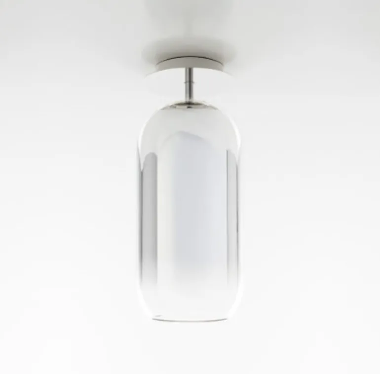 Den grundlæggende form for Gople-lampen, får skønheden frem i glasset, der er håndforarbejdet i henhold til en gammel venetiansk teknik. Her forvandles hvidt glas til krystalglas ved at kombinere begge ved blæsning – derved bliver hver enkelte glas unikt.