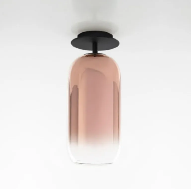 Den grundlæggende form for Gople-lampen, får skønheden frem i glasset, der er håndforarbejdet i henhold til en gammel venetiansk teknik. Her forvandles hvidt glas til krystalglas ved at kombinere begge ved blæsning – derved bliver hver enkelte glas unikt.