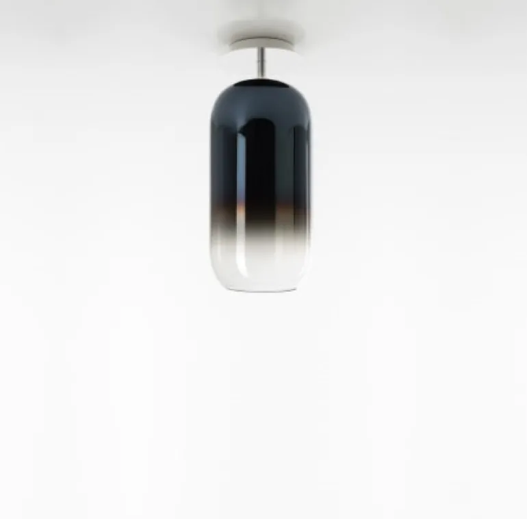 Den grundlæggende form for Gople-lampen, får skønheden frem i glasset, der er håndforarbejdet i henhold til en gammel venetiansk teknik. Her forvandles hvidt glas til krystalglas ved at kombinere begge ved blæsning – derved bliver hver enkelte glas unikt.