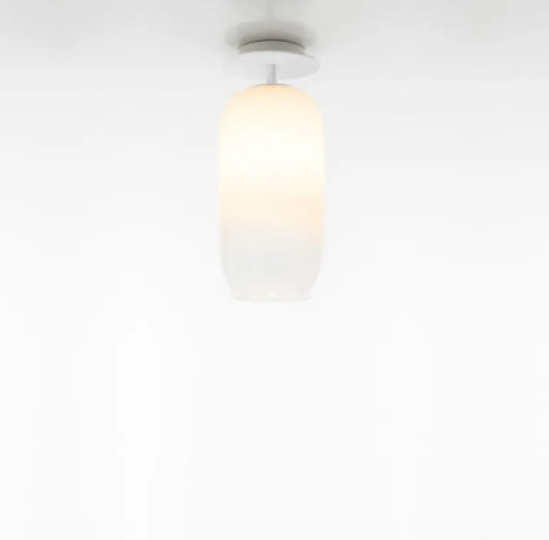 Den grundlæggende form for Gople-lampen, får skønheden frem i glasset, der er håndforarbejdet i henhold til en gammel venetiansk teknik. Her forvandles hvidt glas til krystalglas ved at kombinere begge ved blæsning – derved bliver hver enkelte glas unikt.