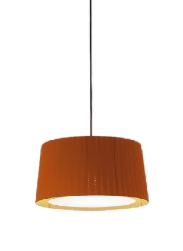 GT5 pendlens skærm er lavet af bogbinderstof, og den er betrukket med bånd af pergamentstof. Denne konstruktion giver en varieret belysning, og når lampen ikke er tændt, fungerer den samtidig som et dekorativt element.