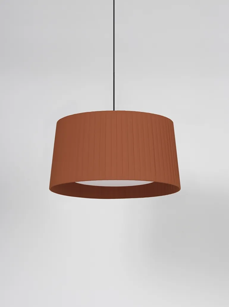 GT5 pendlens skærm er lavet af bogbinderstof, og den er betrukket med bånd af pergamentstof. Denne konstruktion giver en varieret belysning, og når lampen ikke er tændt, fungerer den samtidig som et dekorativt element.