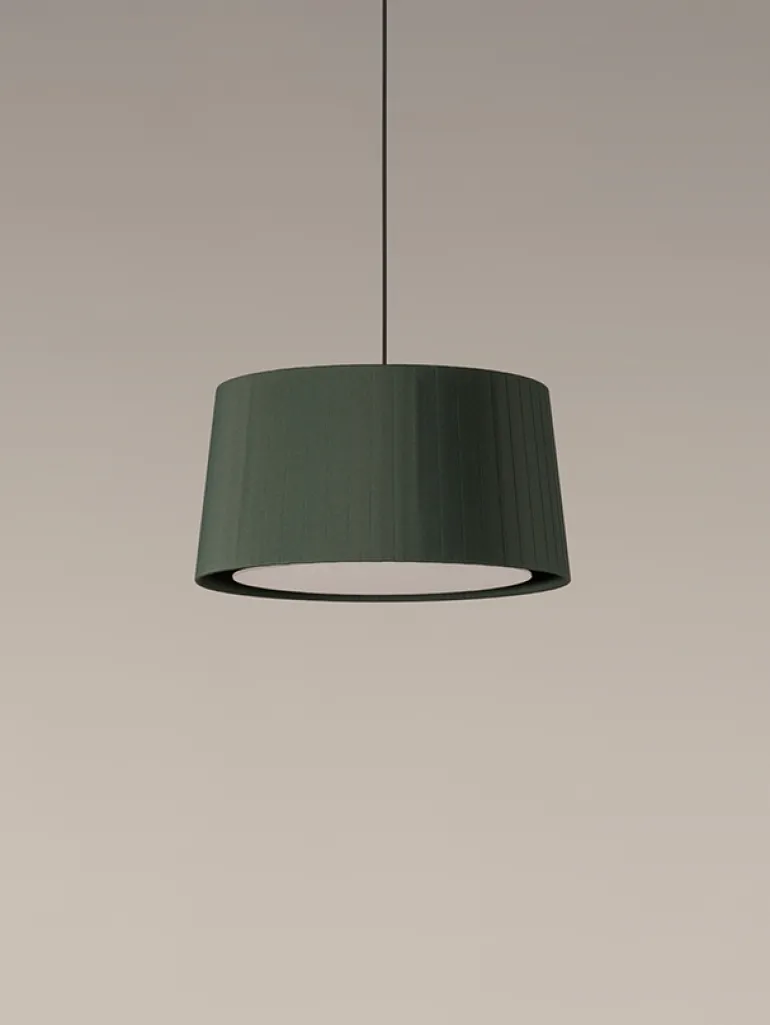 GT6 pendlens skærm er lavet af bogbinderstof, og den er betrukket med bånd af pergamentstof. Denne konstruktion giver en varieret belysning, og når lampen ikke er tændt, fungerer den samtidig som et dekorativt element.