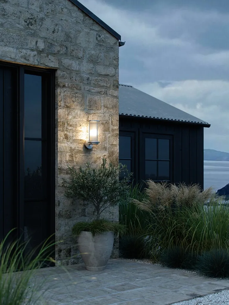 Linton væglampen er vandafvisende, og er lavet af materialer, der er egnet til at klare dårligt vejr.
