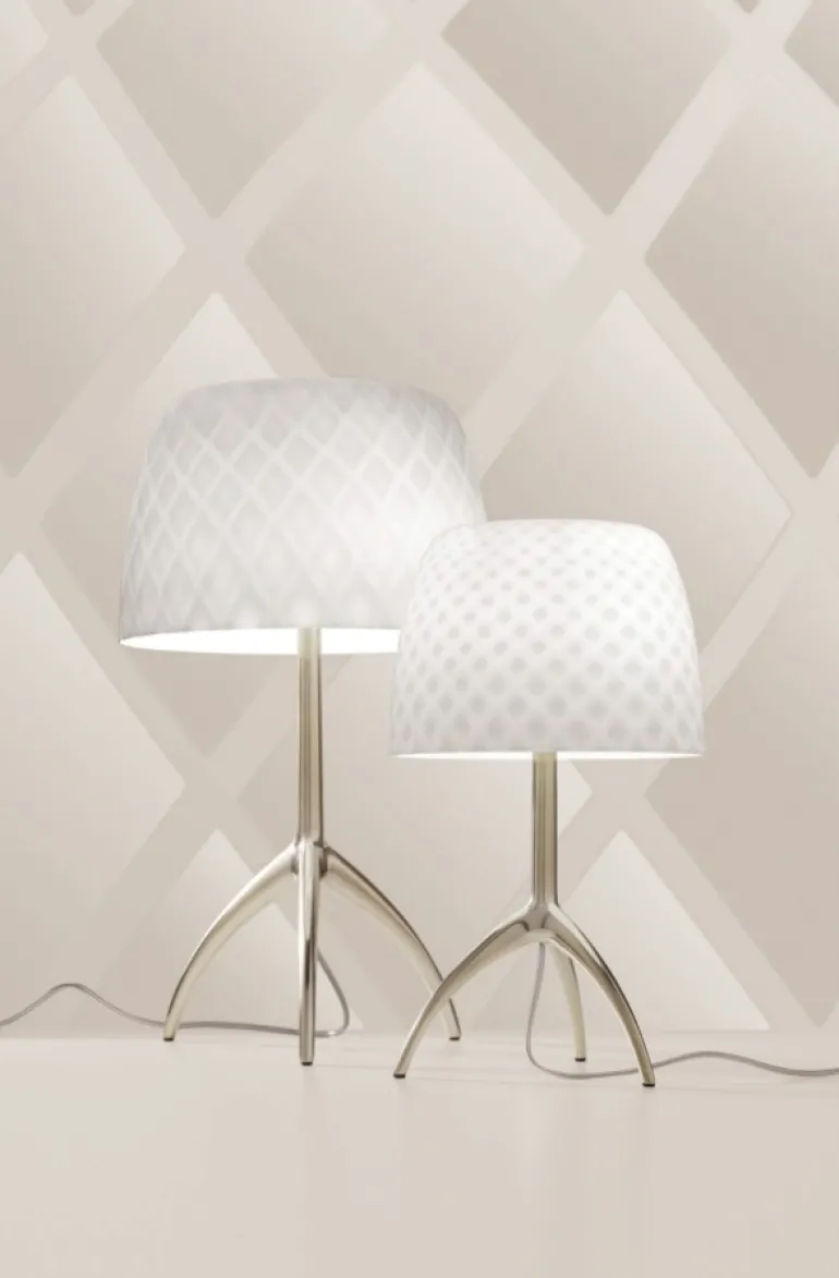 Lumiere Grande er en klassisk og meget elegant bordlampe med aluminiumsstel og mundblæst glasskærm.