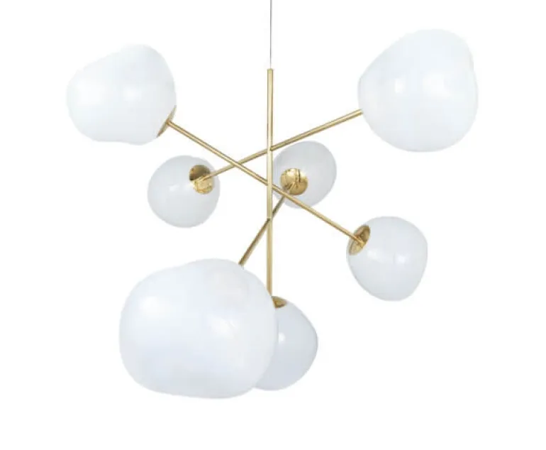 Melt stor består af syv tonede uperfekte kugleskærme, der er monteret, så de svæver ud fra basen og danner en dynamisk lysskulptur.