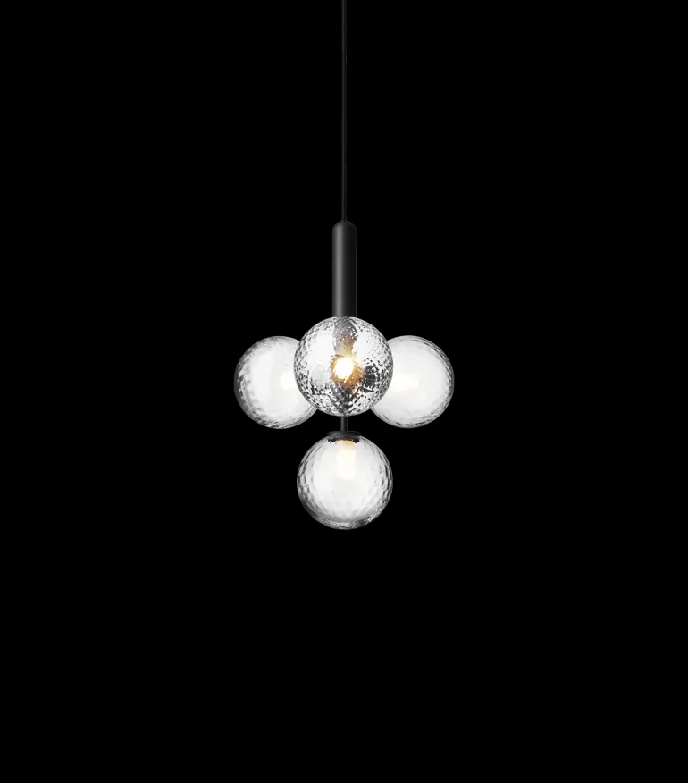 er en lampeserie i et enkelt og tidløst design med nordiske elegance og funktion. Det fine mundblæste glas – og elegante forarbejdede metal – giver designet balance og dybde. Det optiske klare glas med det unikke prægede mønster giver en enestående atmosfære i rummet.