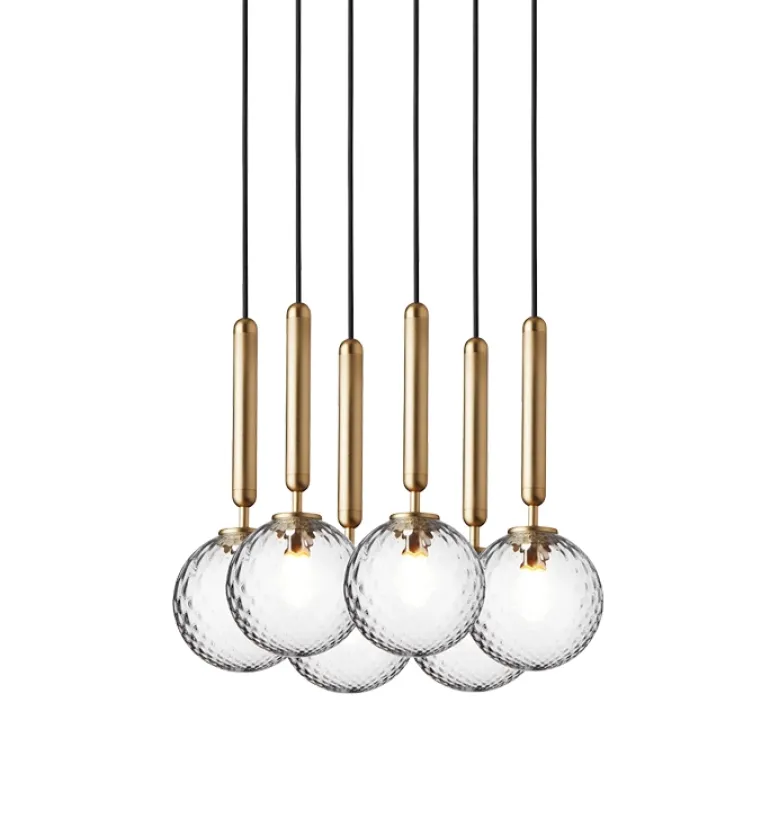 Består af 6 x Miira pendel + loftplade Ø34 cm