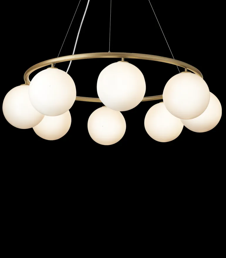 Miira 8 Circular med otte glaskupler har en diameter på 100 cm, Den større lysekrone er særligt egnet over det store eller som flot belysning i den store