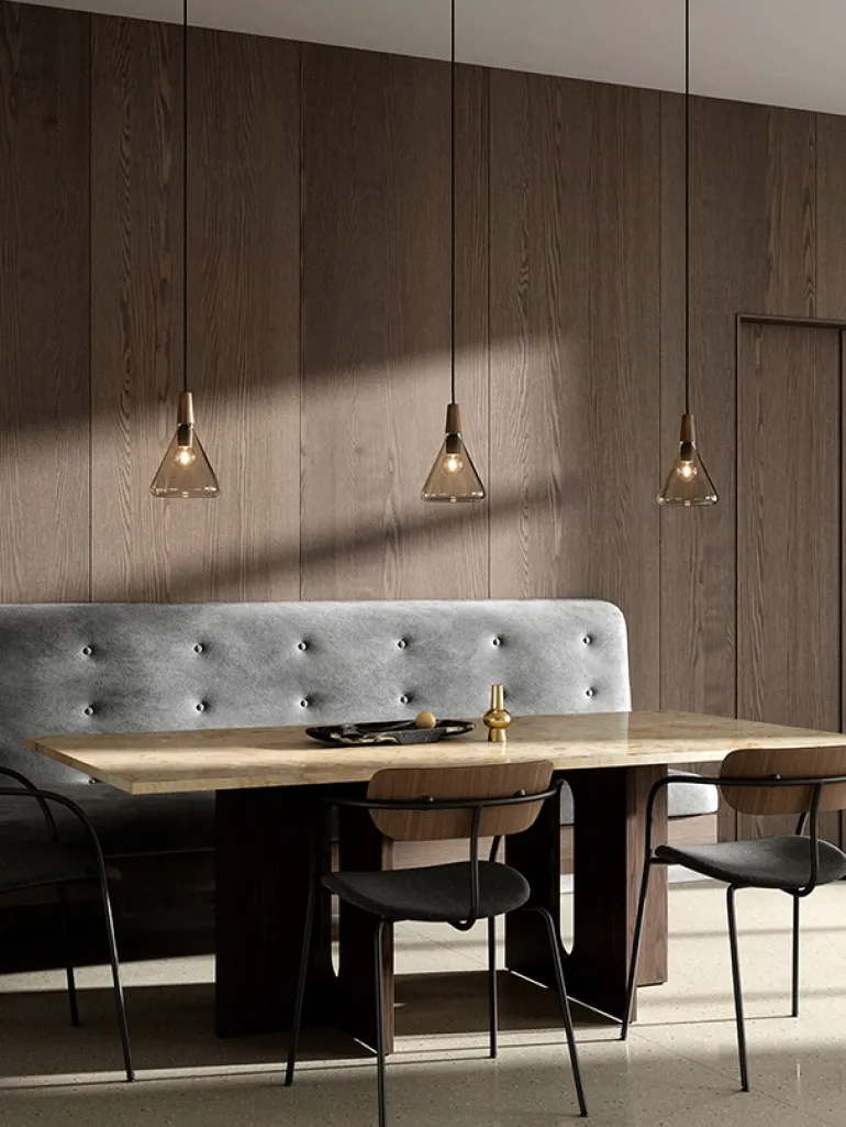 Nori pendlen består af et mix af træ og glas. Pendlen er flot alene, men kan også sagtens hænge sammen med andre Nori pendler.