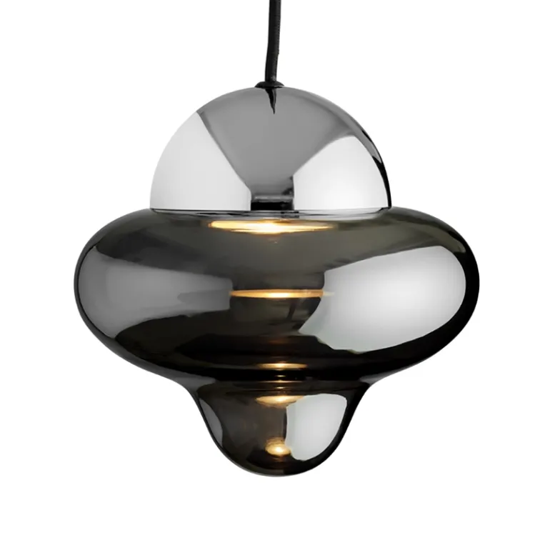 Nutty pendlen findes med klar, brun og smoke glas med enten sort, guldfarvet eller krom top, så der er en lampe til alle slags indretninger.